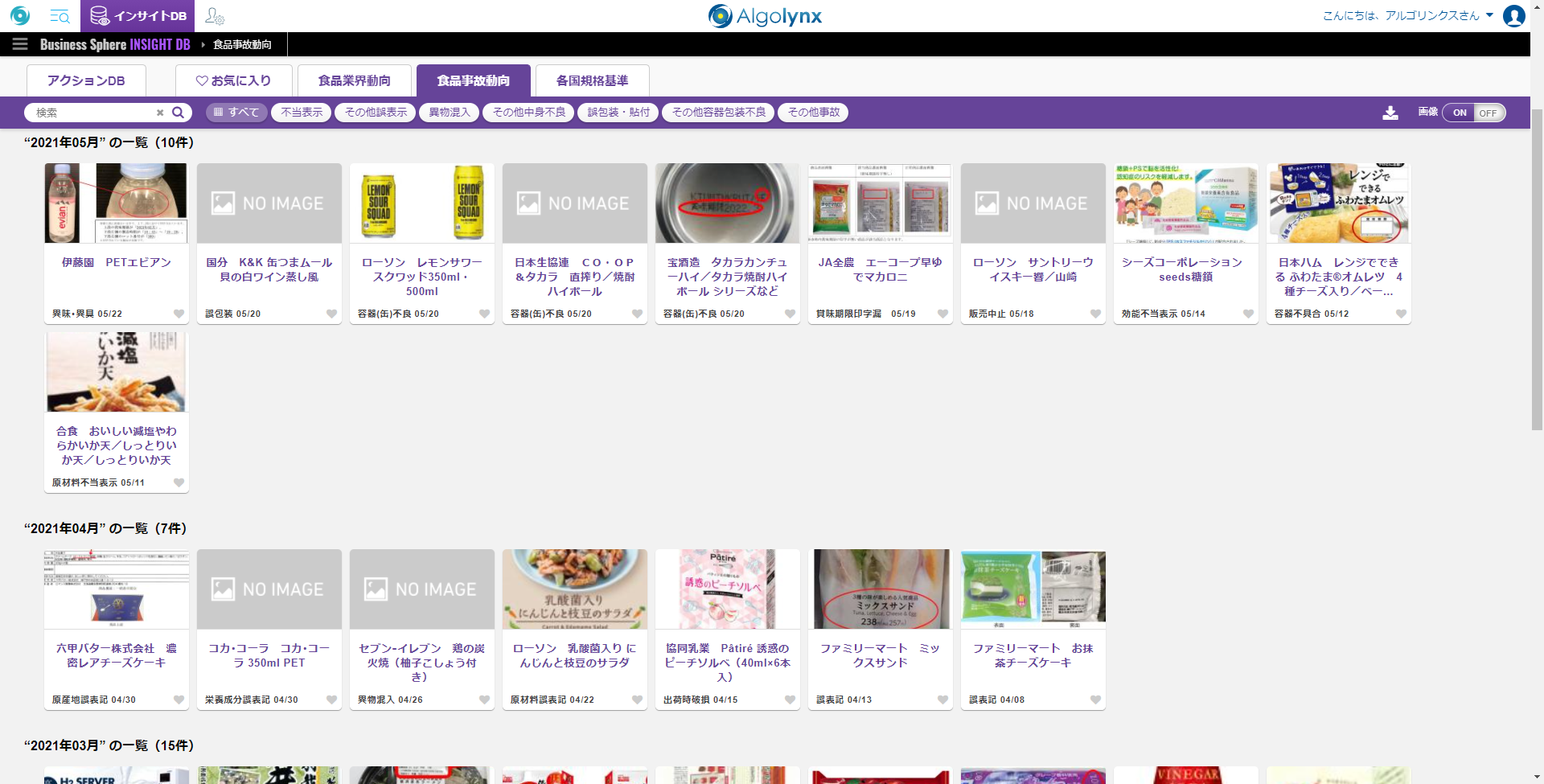 規制、健康・栄養、マーケット、国際の各カテゴリの業界テーマ情報を食品企業向けに解説し、関連資料や記事を集約。また、国内主要企業の事故・違反情報をデータ化。ニュースとは別の視点で、常に最新に維持された業界知識ベースを提供します。
