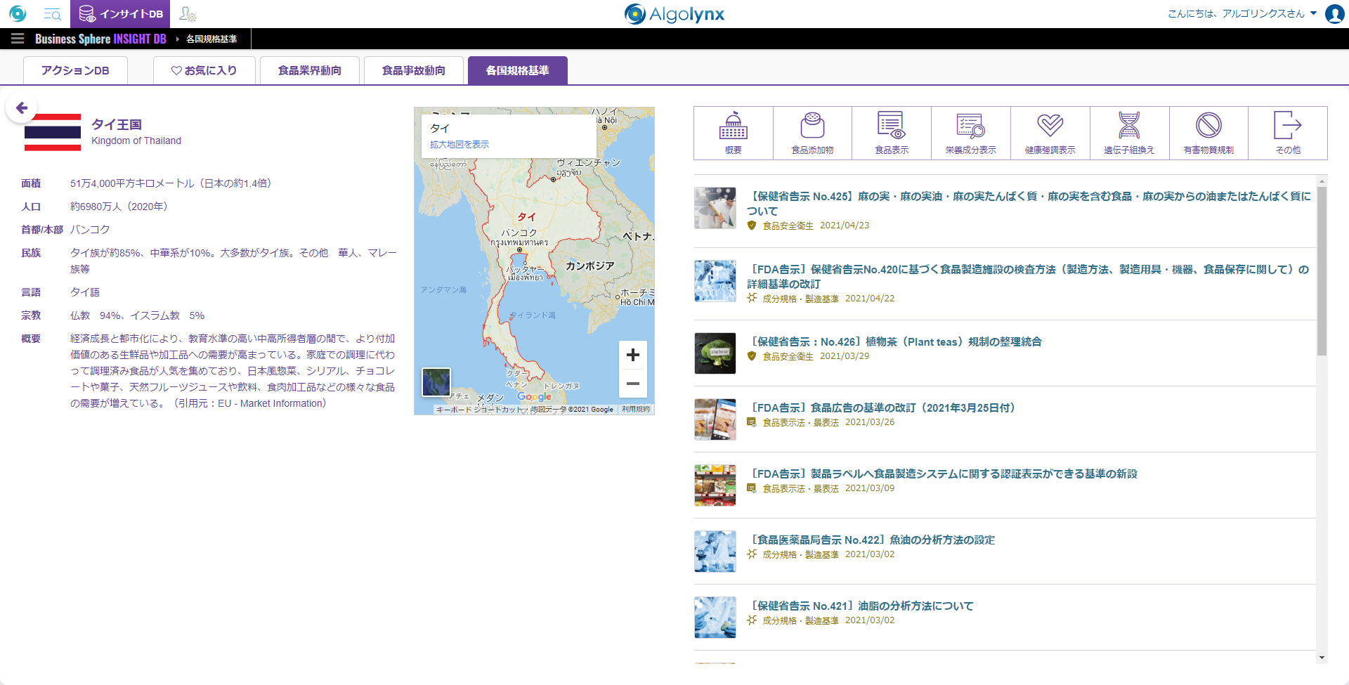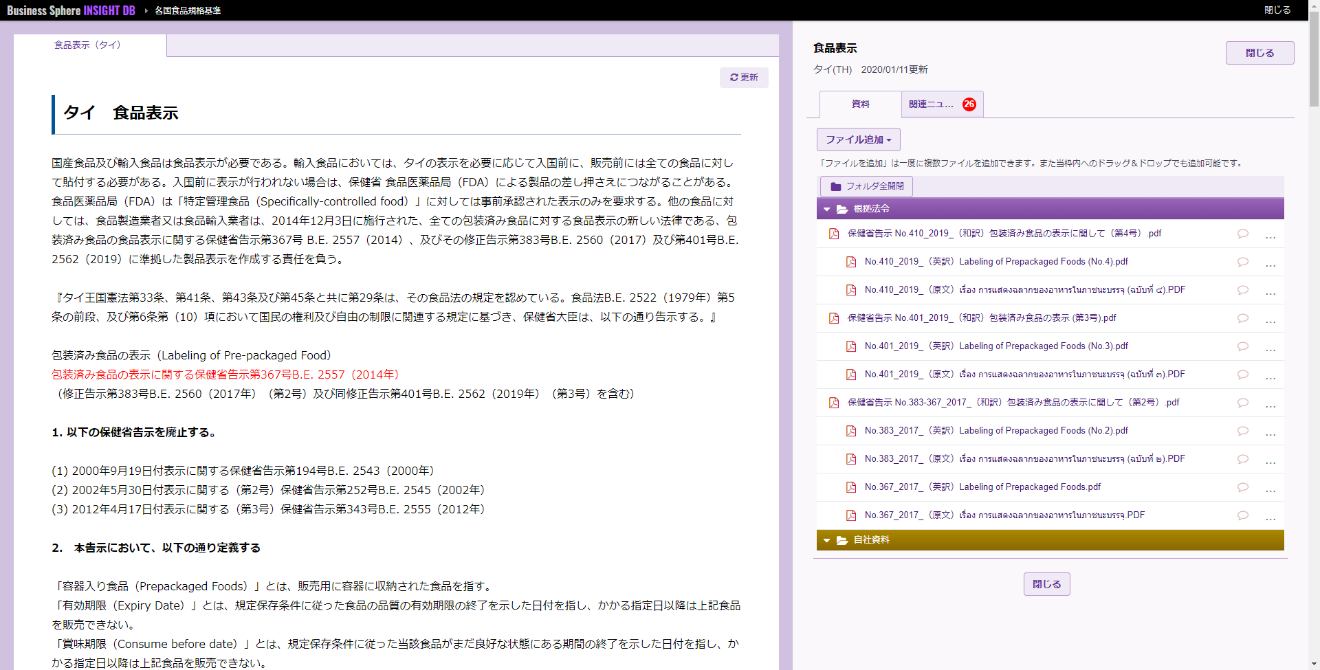アジア/欧州/北米/オセアニアなど約20か国・地域の最新の食品規格基準を解説、法令文書をライブラリ化。海外進出を行う食品企業の品質保証や規制調査支援に重点を置いた実用的情報を提供します。