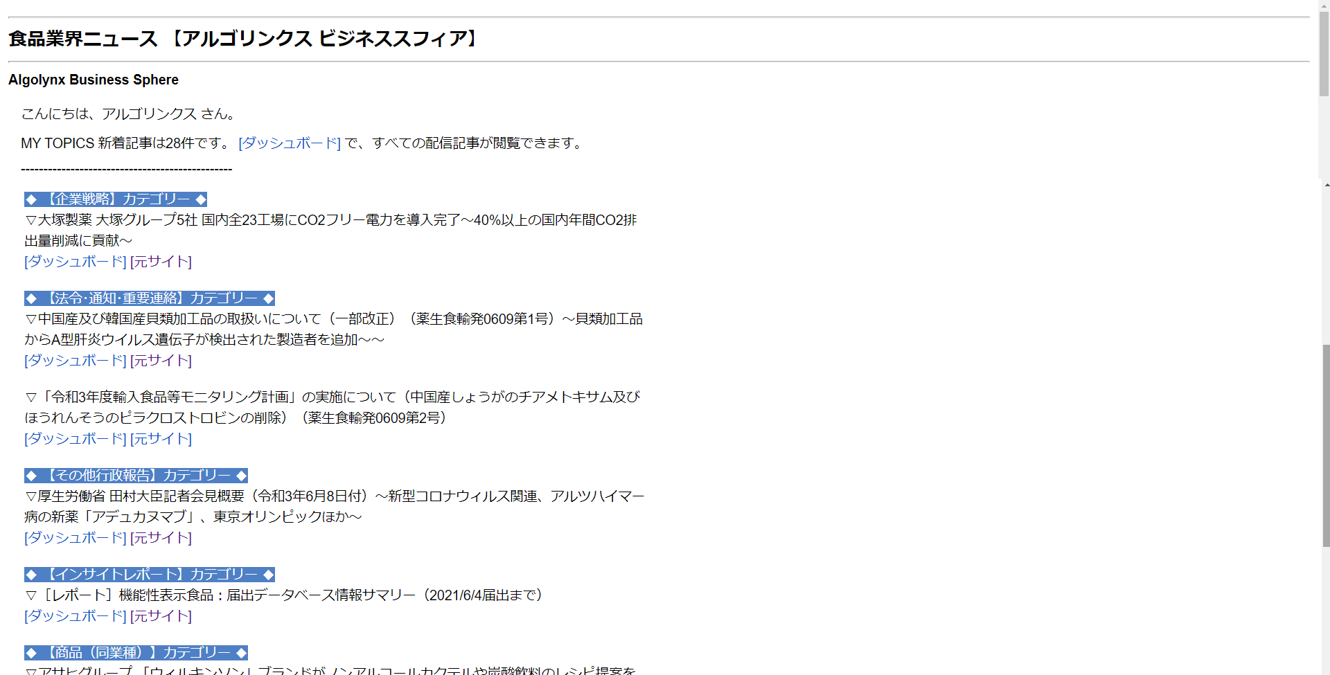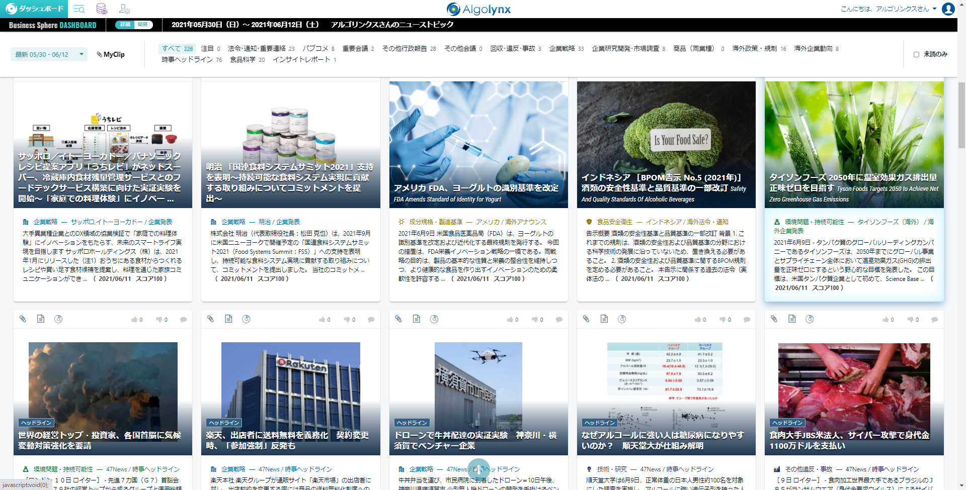 Algolynx Business Sphere ® では、毎日の記事を配信するだけでなく、