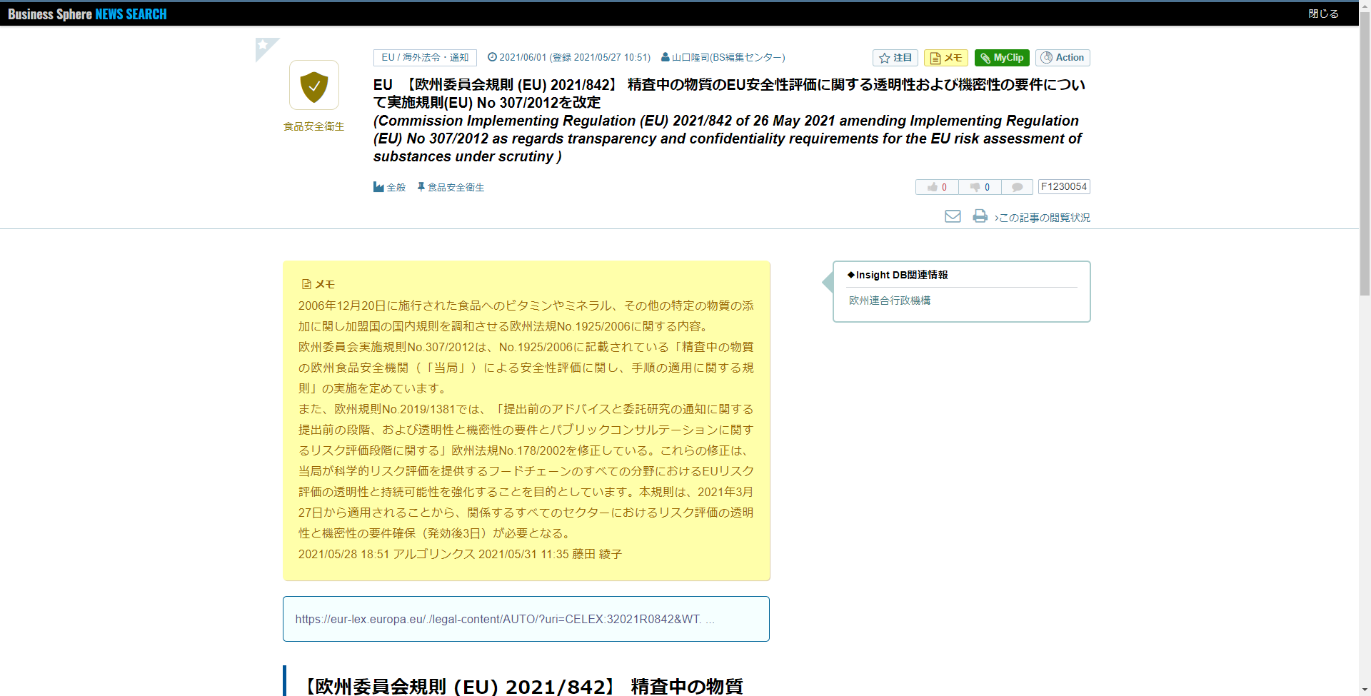 日本・各国の食品規制や安全情報、回収・事故、企業動向、食品研究など広範かつ網羅的に最新情報を収集。